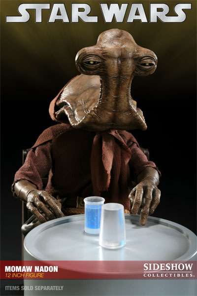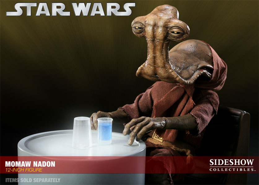 Sideshow's Comic-Con celebration has kicked off, featuring daily product specials and reveals. Once such reveal is their newest 12-inch Star Wars figure: MOMAW NADON, aka HAMMERHEAD. Two versions of this cool cantina creature are being offered (click each name to place your pre-order):