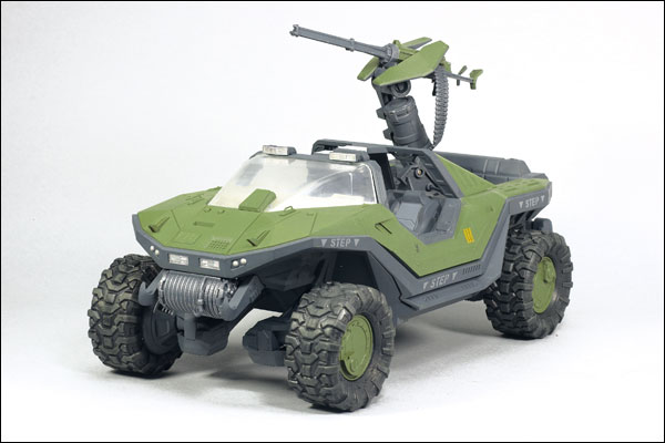 Warthog with Light Anti-Aircraft Gun: As recognizable as Master Chief himself, the UNSC Warthog has been featured in every Halo game. This large, Jeep-like vehicle can carry up to three five-inch Halo figures into battle. This version features the classic Light Anti-Aircraft Gun turret. Play action includes rolling wheels, turning steering wheel, spinning gun turret, and elevating Light Anti-Aircraft Gun.