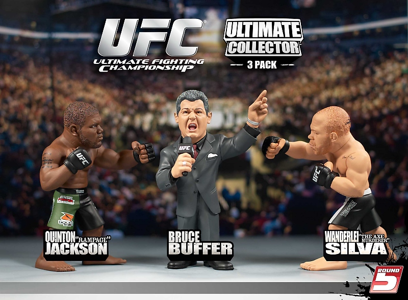 The exclusive 3-packs are enhanced versions of the new Round 5 "Versus" line, distinctly new figurines highlighting battle scenes from great UFC matches, supplemented with a Buffer figure, not available in any other Round 5 Series at mass retailers in the U.S. The three matchups available in limited quantities at the Expo are "Rampage" Jackson vs. Wanderlei Silva (UFC 92), Tito Ortiz vs. Chuck Liddell (UFC 66) and Frank Mir vs. Brock Lesnar (UFC 100). Buffer will also sign autographs at the Round 5 booth at the Expo."