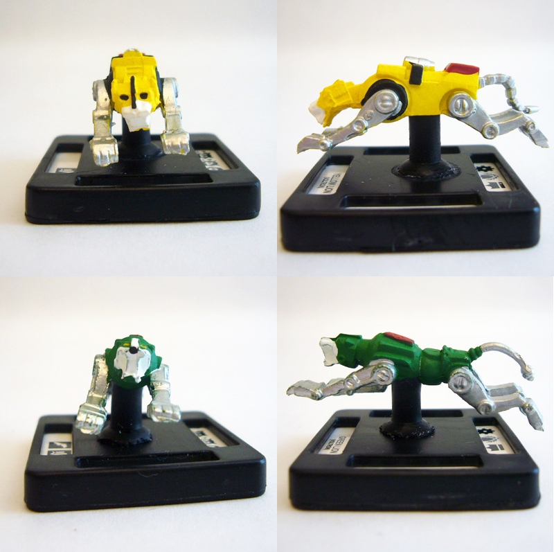 One of the great things about Voltron that really appealed to kids was the fantastic color palette. You could immediately tell the good guys from the bad just by the colors, and the different lions were even named for them! Any Voltron product, therefore, has to be faithful to those hues. Monsterpocalypse's versions hit every mark. The lions are bright and vivid, with all of the appropriate accent colors like metallic silver on the legs and markings in blue, red, black, and yellow. Voltron itself combines all of those colors and adds the intricate chest symbol and more silver on the robot's face.