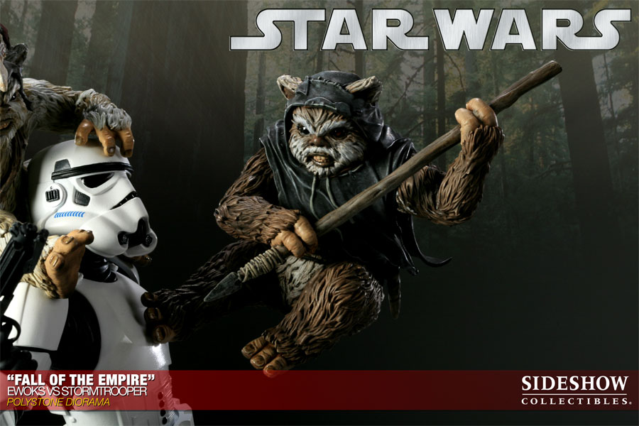[HR][/HR]Sideshow unviels their latest Star Wars sculpture: "Fall the Empire" - Ewoks Vs Stormtrooper Diorama. Pre-Orders for this dramatic piece will begin Thursday, August 26th through Sideshow's website.