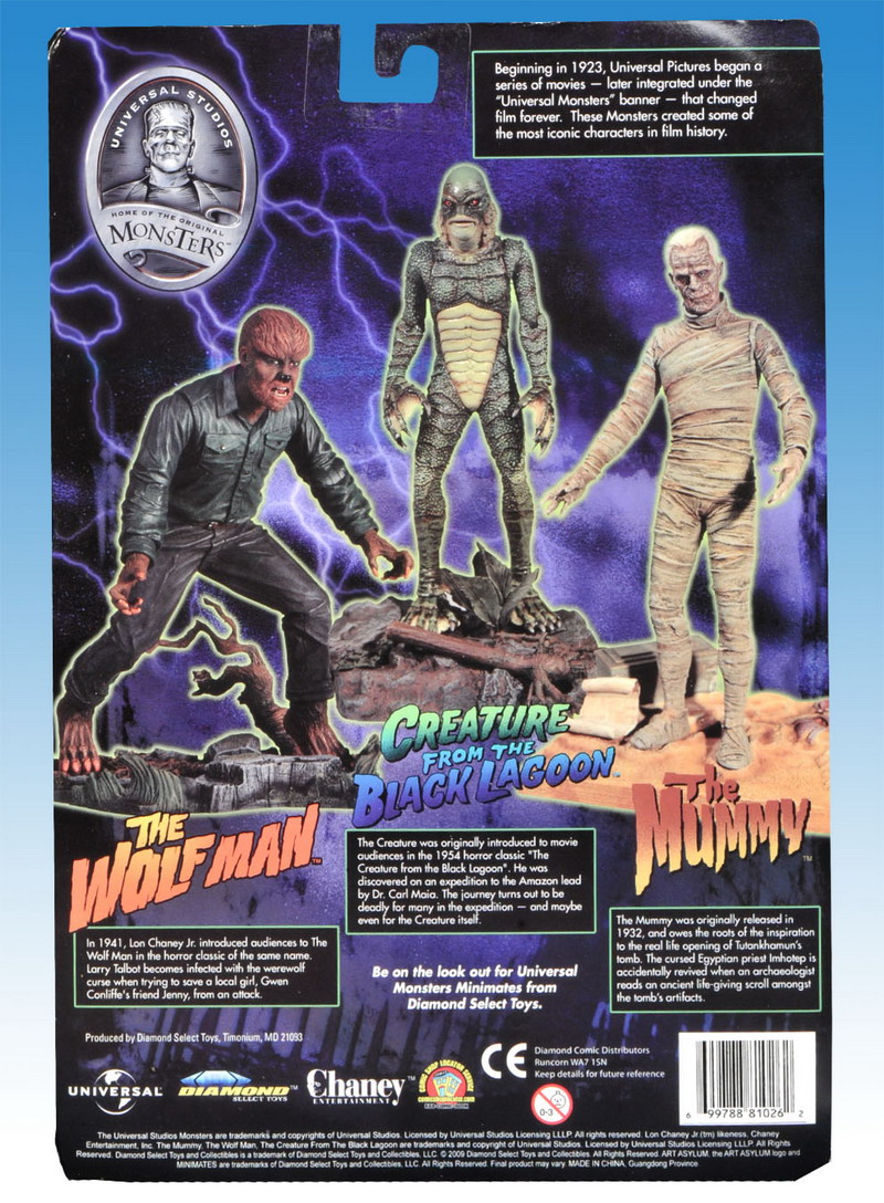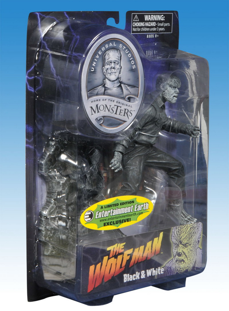 [HR][/HR]In addition to Diamond Select Toys' basic Universal Monsters action figure assortment (see our story HERE) and deluxe wave (HERE), an exclusive Black and White Wolf Man will see release. Painted monochromatic to look like the creature as it appeared in the 1941 classic, this 7" figure is being offered as an EntertainmentEarth.com Exclusive. The Black and White EE Exclusive Wolf Man is priced at $19.99 and scheduled to arrive this October.
