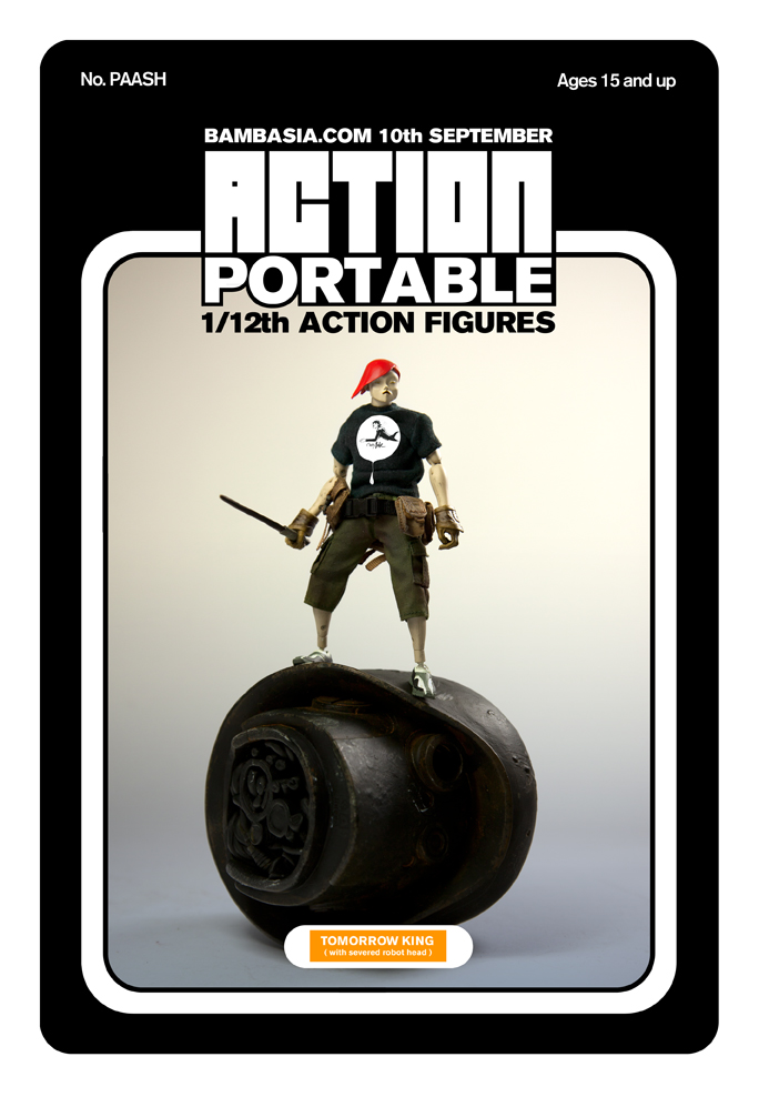[HR][/HR]Three A Toys introduces Action Portable, the new official brand name for their 1/12th scale line of Ashley Wood designed collectibles. Action Portable encompasses previous 1/12 scale releases such as World War Robot Portable (WWRp) and limited run of mini Nom de Plume action figures. Action Portable will see its first branded release this Friday with the first 1/12th scale Tomorrow King.