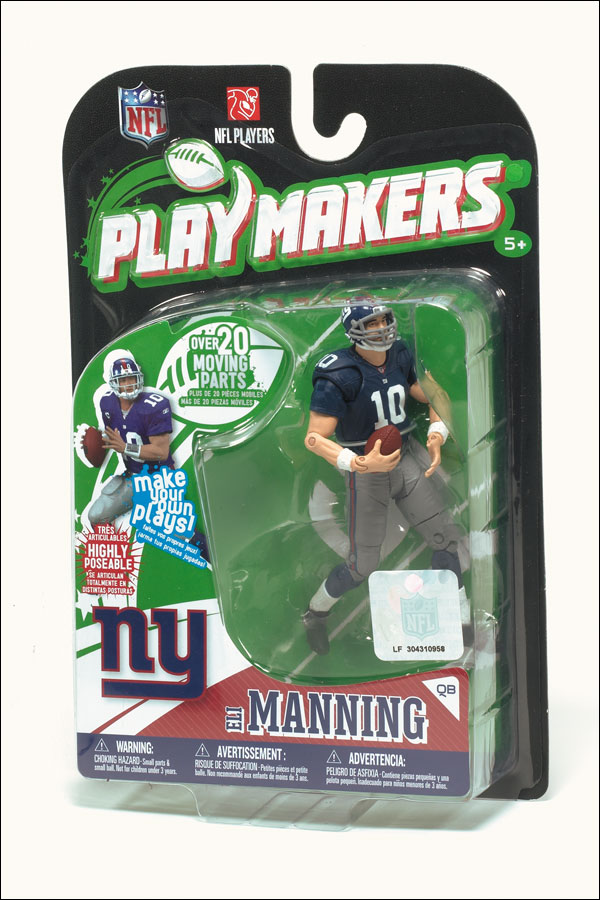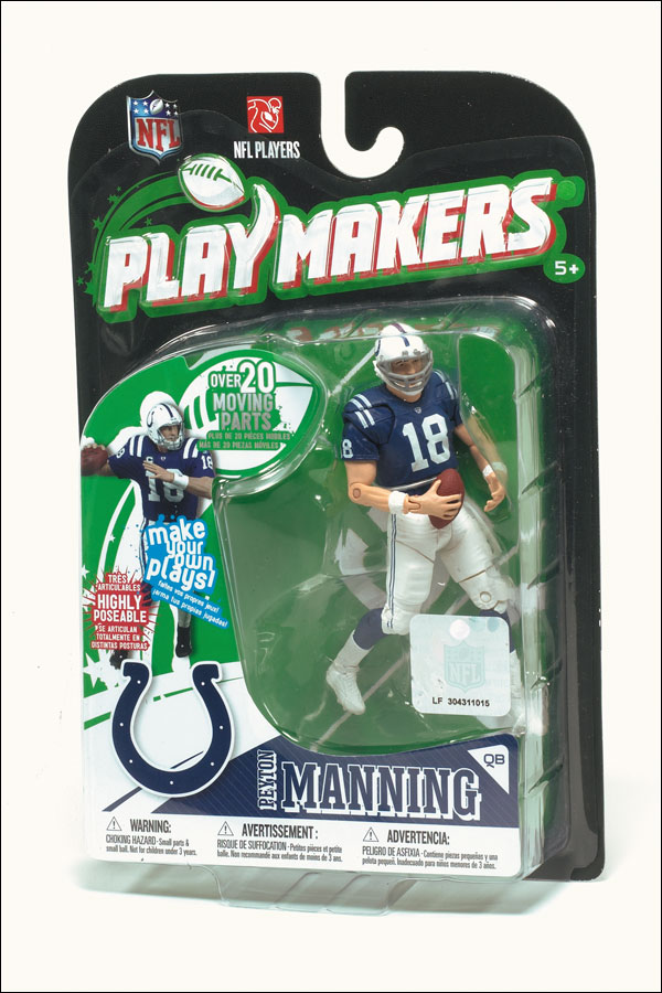 [HR][/HR]McFarlane Toys presents their debut series of NFL PlayMakers. This series follows up the MLB PlayMakers line, which introduced our first heavily-articulated sports figure. NFL PlayMakers possess a similar range of motion, allowing you to pit the NFL's best against each other in realistic action poses.