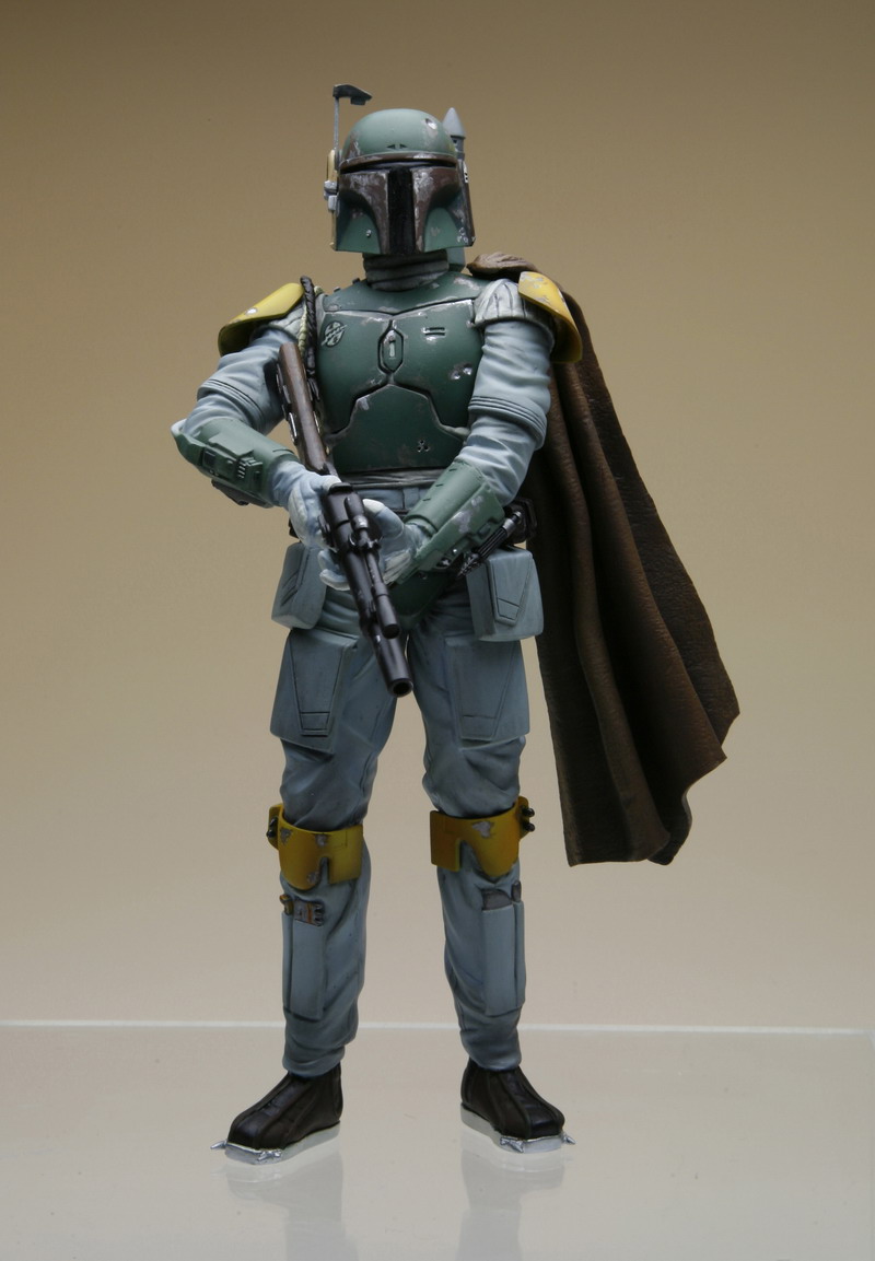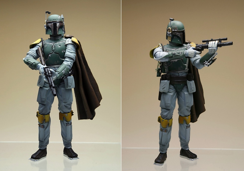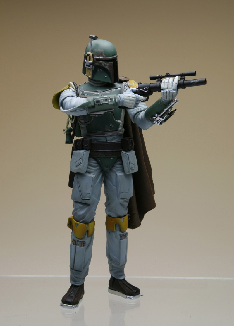 [HR][/HR]Kotobukiya returns to their smaller scale, pre-painted snap-fit Star Wars ARTFX+ Statue series with two new items. First up is the notorious bounty hunter BOBA FETT (CLOUD CITY VERSION). Appearing as he did in Empire Strikes Back, Fett can be displayed in two ways: holding his gun at ease or aimed at his quarry. Two different interchangeable arms are included to do this and magnets in his feet allow for solid display on the included base.