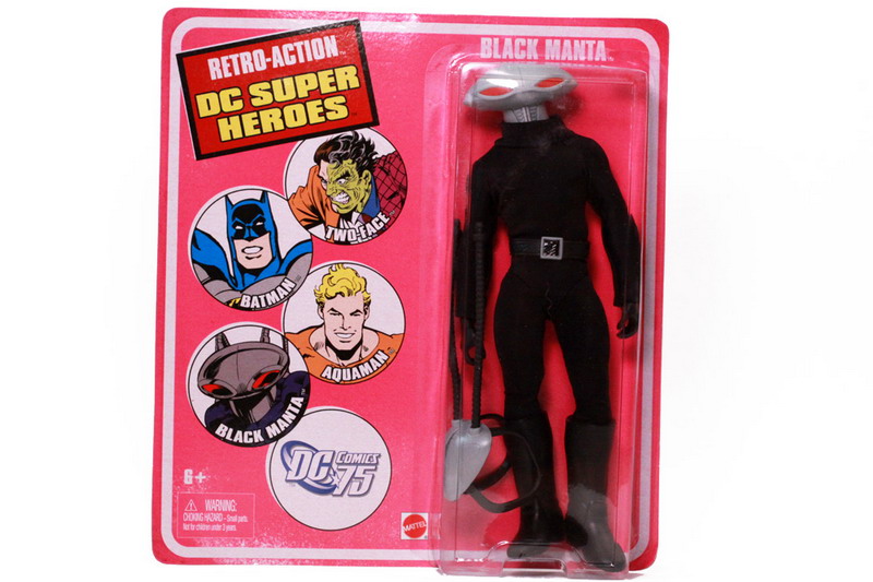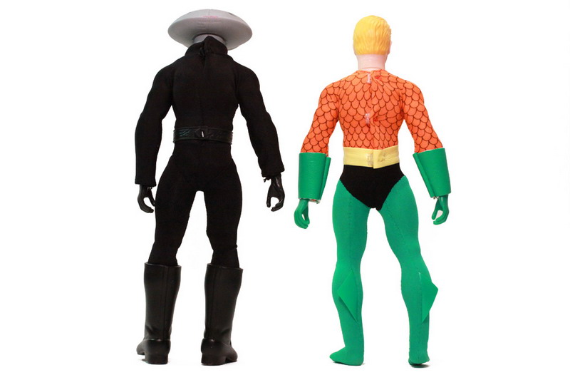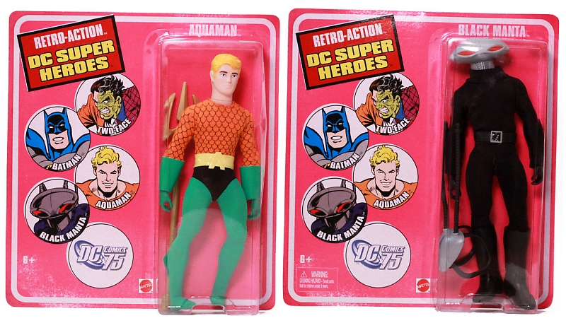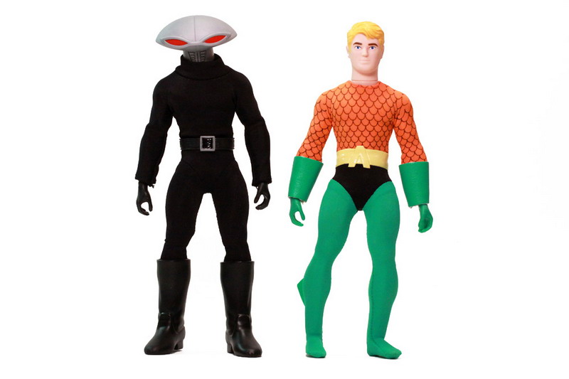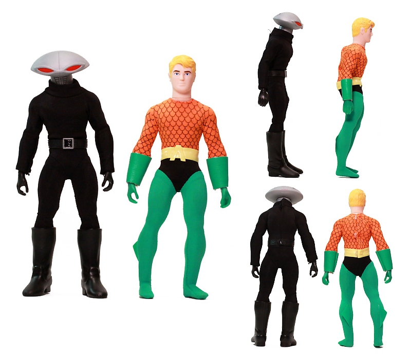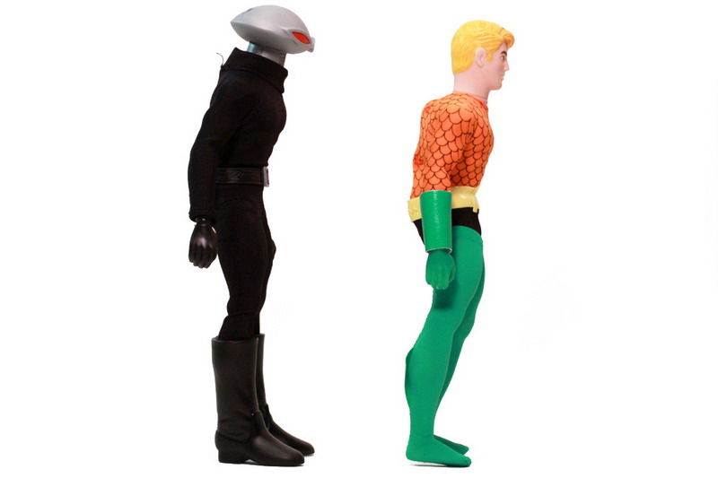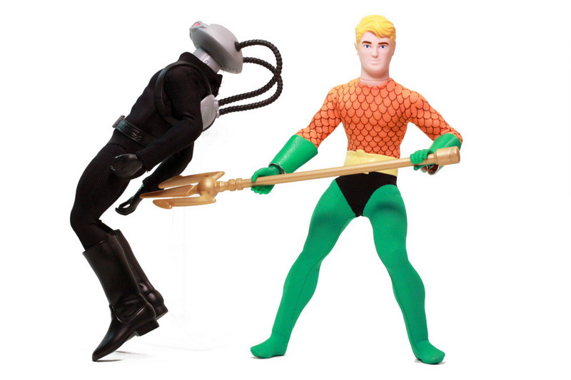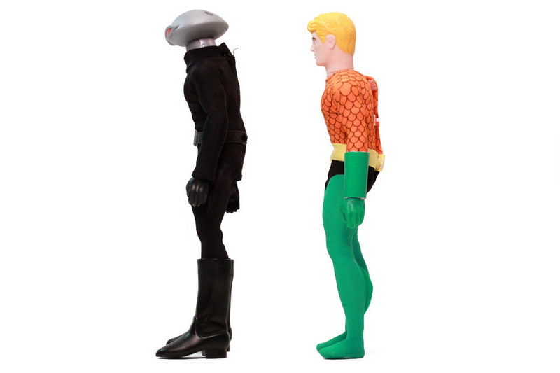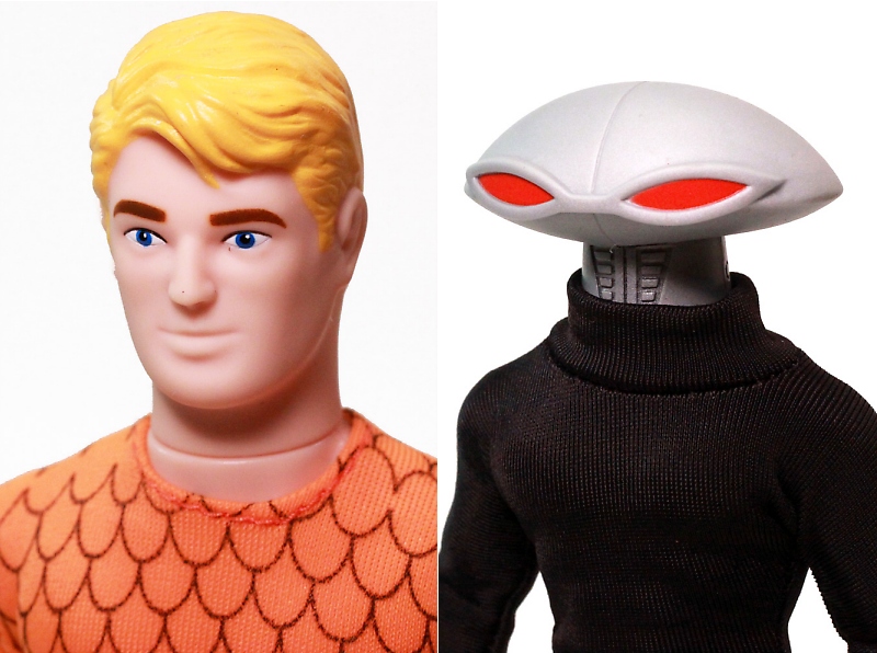 The sculpting on these figures has most definitely been updated. The vintage Mego Aquaman sported seventies sideburns. This new Aquaman retains a retro simplistic style without going overboard. Black Manta is an all new figure but still features the very retro stylings and fits in rather well.