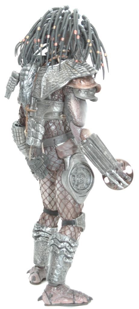 The figure body, armor, and all accessories are held protected inside a form-fitted plastic sleeve which ensures each part and piece arrives in mint condition. Unlike many of the originally released Predator 2 figures, the Guardian Predator already has the armor and body net on it and comes ready to equip with accessories and display.