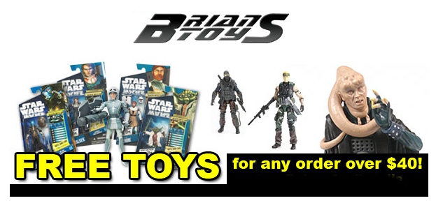 FREE TOYS are back at BriansToys.com! To qualify for this promotion, you must spend $40 or more worth of in-stock merchandise between now and November 17th, 2010, and you become eligible to pick one of the following items or figures LISTED HERE - Absolutely FREE! Just add one of the products and apply the coupon code at checkout!