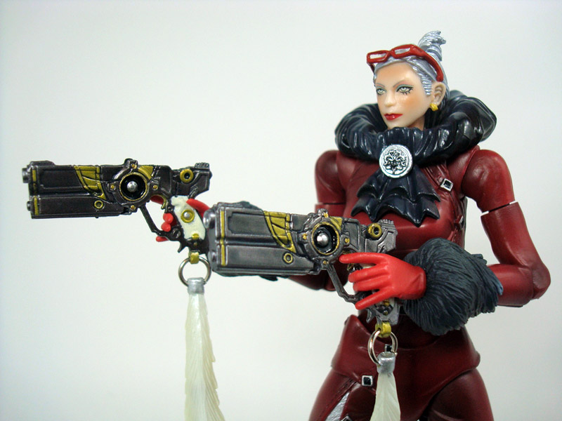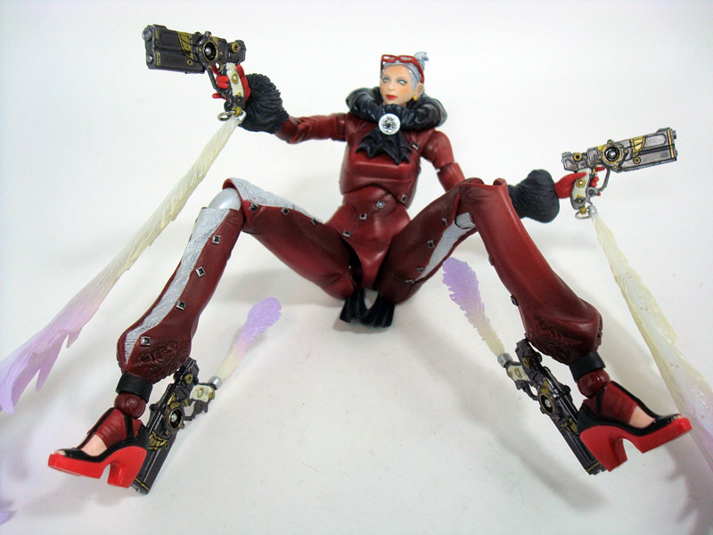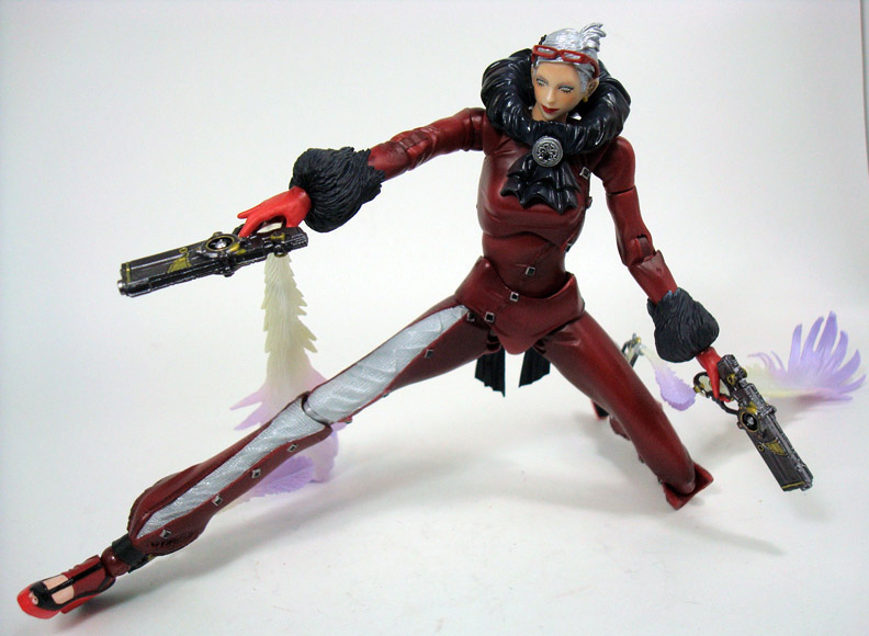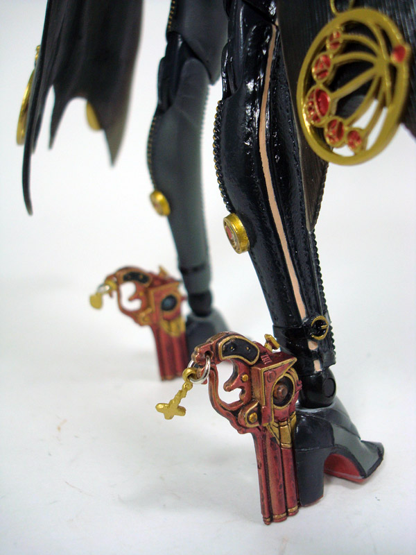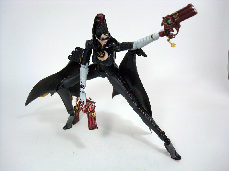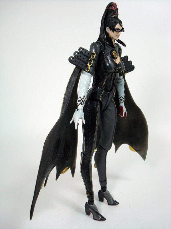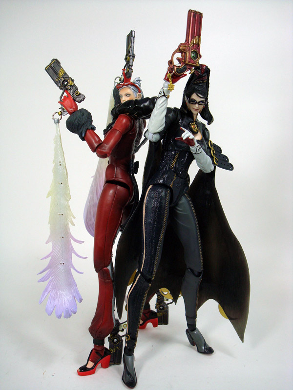 Square-Enix has taken all the style and flair of the game and it’s character designs and has translated them fairly accurately to action figure form. Both girls have long bodies and elongated limbs that make their heads appear to be a tad small, but keep with the game’s art direction. Both girls have over 25 points of articulation, with Bayonetta having a bit more due to her cape.