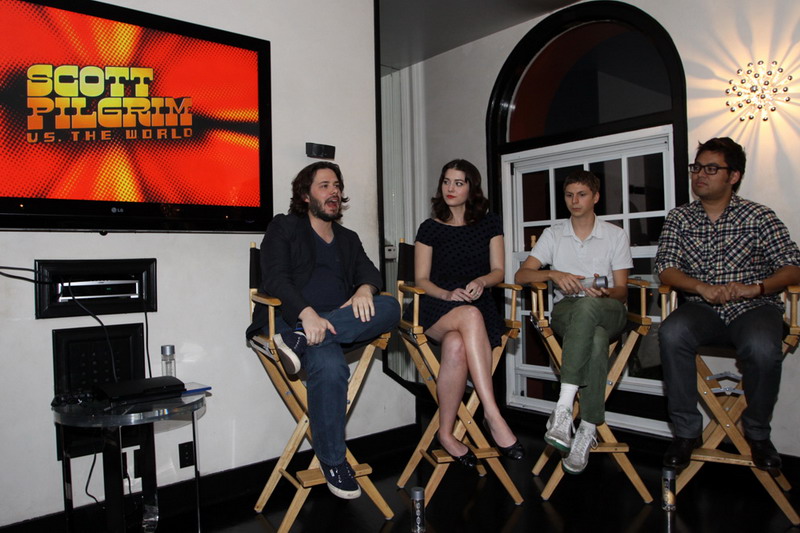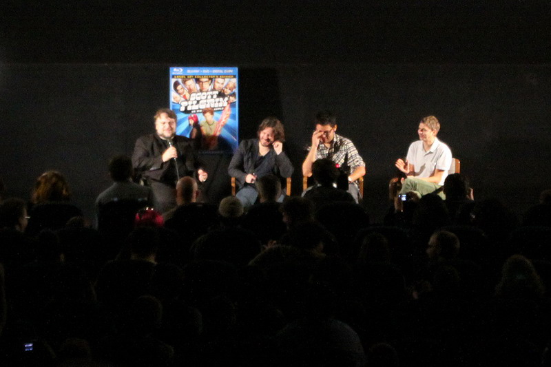 Following the special event, we were invited to attend an American Cinematheque Screening and Q&A at the historic Egyptian Theater in Hollywood. Director Edgar Wright, Michael Cera and creator Bryan Lee O’Malley sat down for a lively discussion for fans, moderated by filmmaker and fan himself, Guillermo del Toro. Cast members Mary Elizabeth Winstead, Satya Bhabha and Johnny Simmons were also in attendance. Enjoy a sampling of the fun that was had that night with this wide assortment of videos below.
