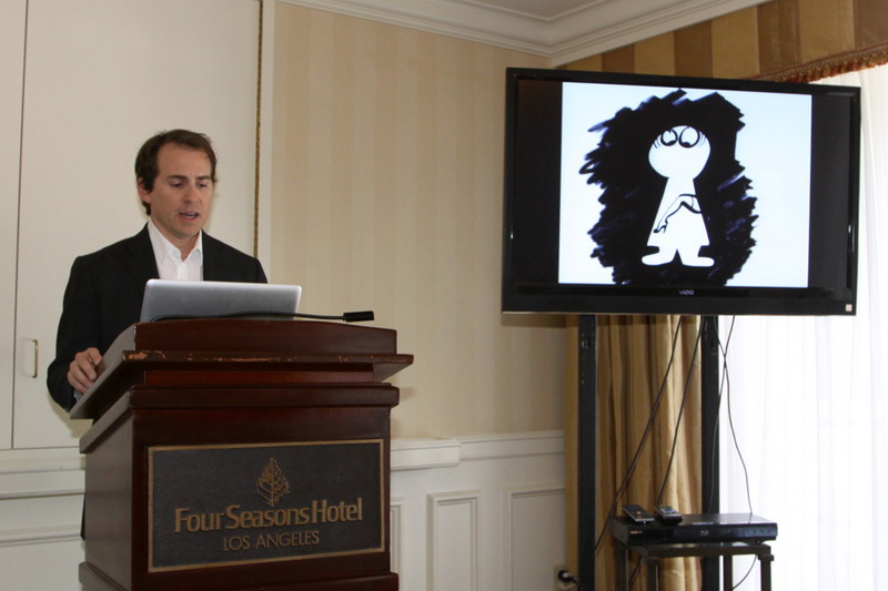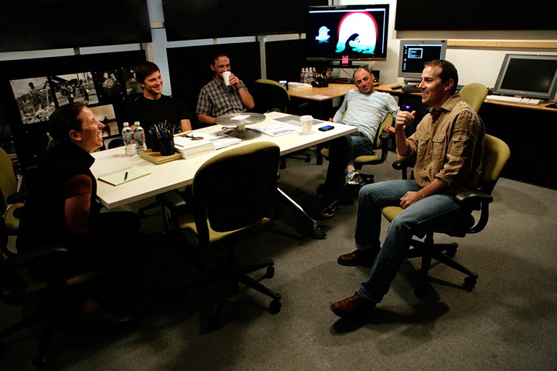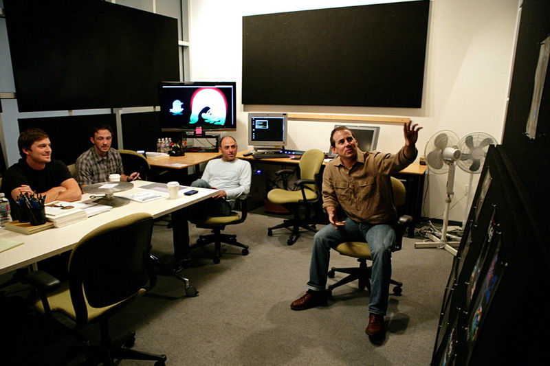 Photo of Teddy Newton and of Production Meetings by Deborah Coleman/Pixar