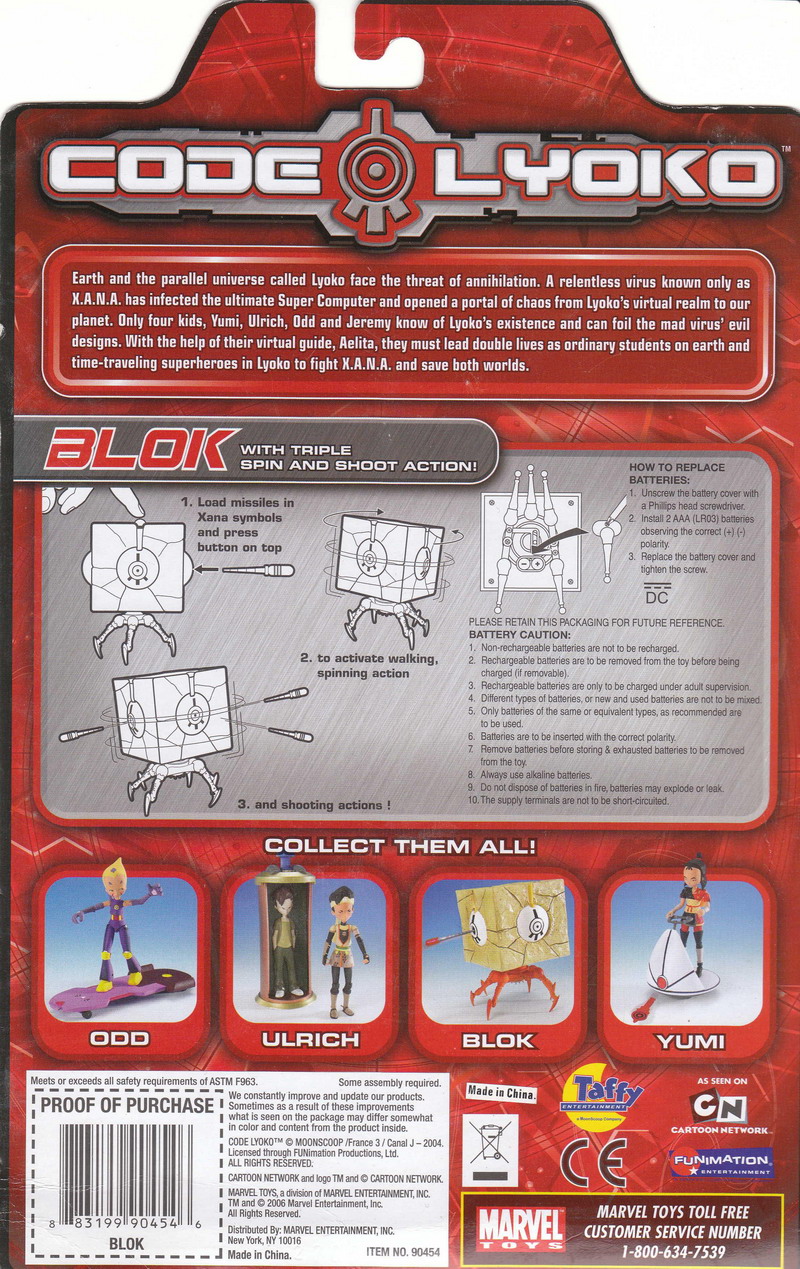 [HR][/HR]Code Lyoko, which debuted on the Cartoon Network in 2004, was an animated series popular in France, gaining some traction here in the States. Oddly enough, toys weren't released until 2006, a year before the series ended. Even stranger was the fact that Marvel Toys made them. Formerly Toy Biz, Code Lyoko was one of Marvel Toys' first licenses; aquired after their formation and after losing the Marvel superhero license to Hasbro. Marvel Toys that didn't make Marvel toys... umm, yeah. I picked up Blok, a unique cube creature with legs that launched missiles from its eyes. Strange, just like the circumstances surrounding it.