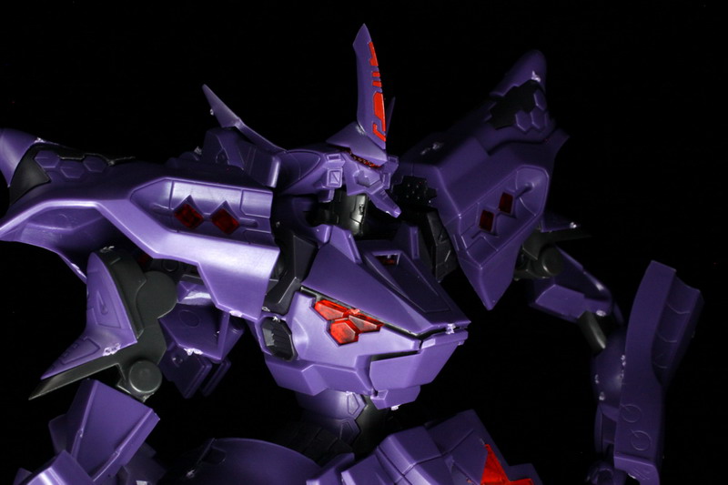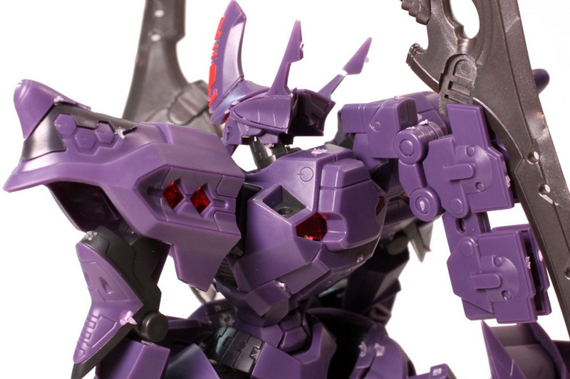 Because this is a model kit, paint has not been applied with the exception of the red markings on the bridge of the helmet. The plastic pieces come in purple, black, gray, and transparent red. Thankfully there is a color guide in the manual to help you with the paint process if you choose to do so. The photographs in this review show the unpainted product.