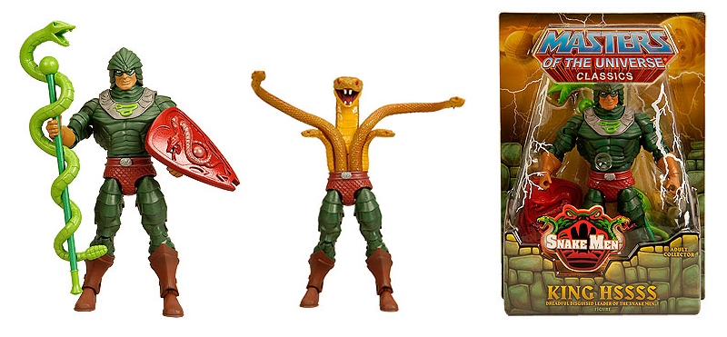 * MOTUC King Hssss: The Club Eternia Figure of the Month for March features a fully articulated snake form torso. Please note that this item is arriving in two shipments. All subscriptions will be fulfilled first and the small amount remaining will be offered to non-subscription customers on 3/15. Mattel will hold a special second sale on 4/1 after the second shipment arrives. Included with 2011 Club Eternia subscriptions.