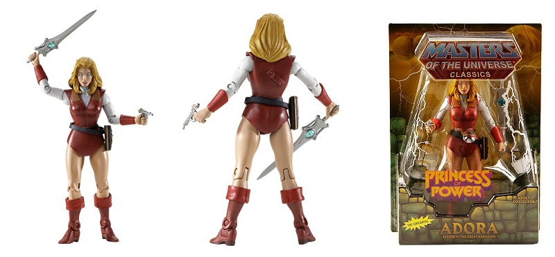* MOTUC Princess Adora (re-issue): Please note this figure is a re-issue, which means most packages will have a graphic burst stating “The Original.” Not included with 2011 Club Eternia subscriptions.