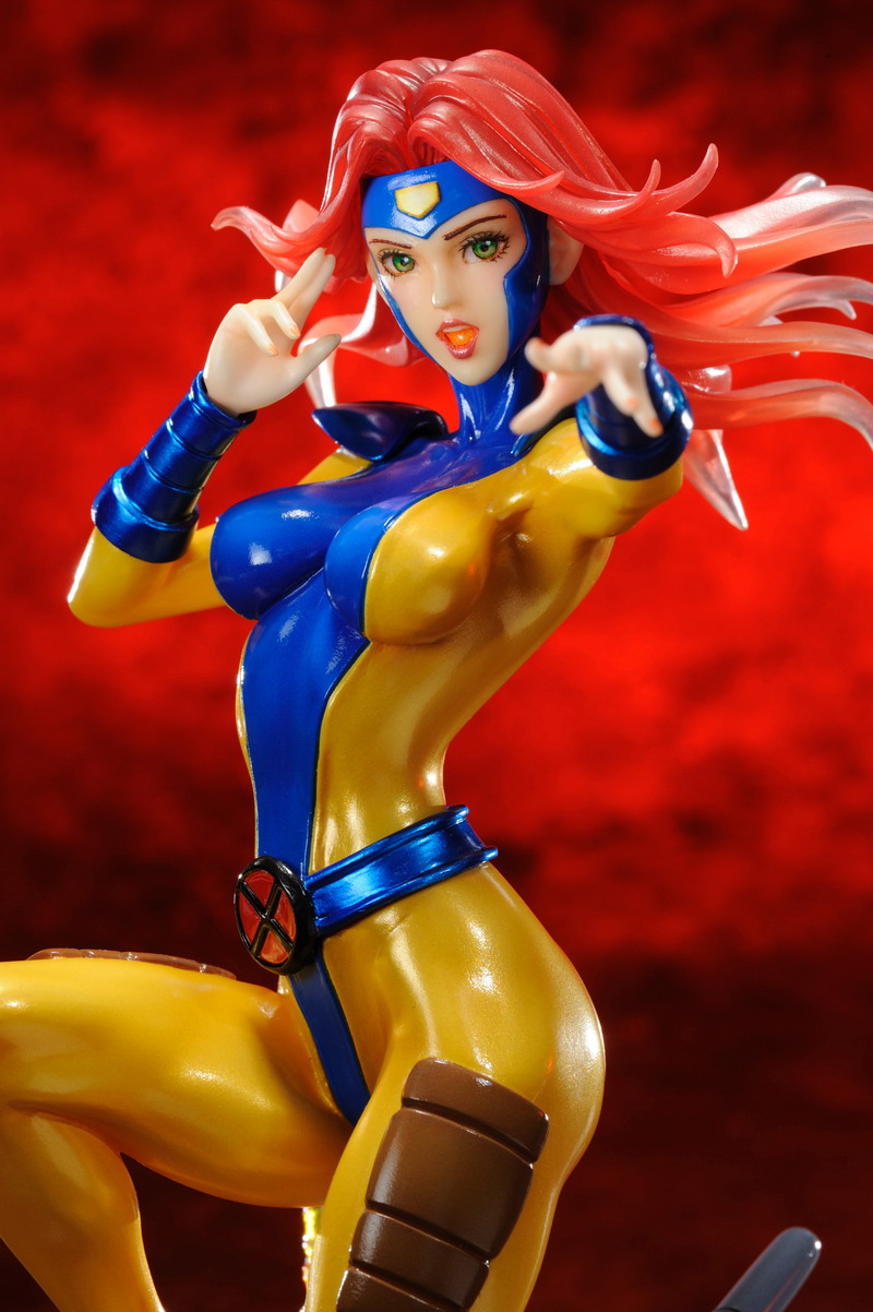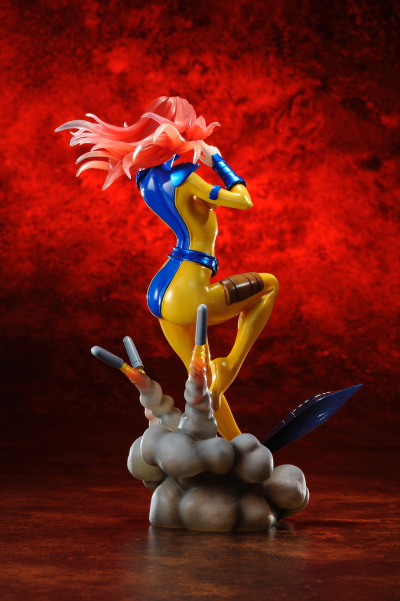 Jean Grey (pictured above) will receive Koto's Bishoujo ("pretty girl") treatment based on an original character reinterpretation of her X-Men Vol. 2 #1 look by illustrator Shunya Yamashita. She tands nearly 8 ½ inches tall (in the current Marvel Bishoujo 1/7th scale) atop an exclusive georama base – a massive smoke cloud from which bursts the X-Jet and a trio of missiles. Arriving this July priced at a SRP of $59.99.