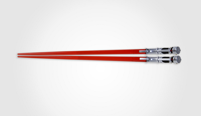 Suitable for eating sushi or defending the galaxy, the chopsticks' red and blue lightsaber blades are cast in translucent material. Each 9 inch long miniature replica is intricately sculpted and detailed, matching their appearance in Episode III: Revenge of the Sith.