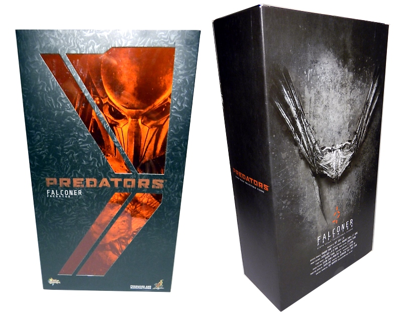 PACKAGING: The packaging that Hot Toys has developed for this line has a distinctive new-age and sleek look which stands out among other MMS collections. Hot Toys has been sticking to a similar packaging format with most of their recent releases such as I mentioned in my previous Berserker Predator figure review. The Falconer Predator is housed inside a tall rectangular box that features an opening lid. The box also feature a removable black cardboard sleeve that features an angular die cut design with a crimson red transparent film which reveals the figure portrait from the inner box front art. The interior box features a close-up image of the Falconer Predator figure and the back includes a stylized image of the predator’s cybernetic falcon. The interior of the front box flap feature a beautiful full body frontal image of the Falconer Predator figure.