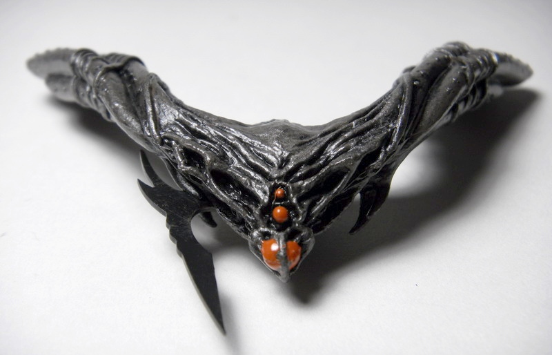 Each individual rubber tendril on the Falconer’s head is colored in a mixture of earth tones that clash against the metal rings that surround them. The cybernetic falcon spares no detail in comparison to the Falconer and is also colored amazingly well. The Predator skull accessory features an immaculate paint job which gives it a realistic weathered ivory look as a result of its masterful blend of washes and dry-bushed color applications.