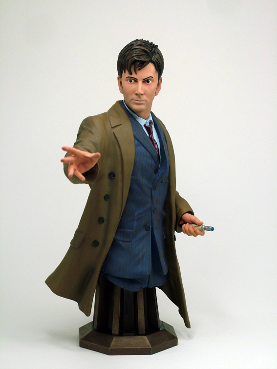 [HR][/HR]Titan Merchandise announces the next maxi bust in their limited-edition Doctor Who Masterpiece Collection: David Tennant's Tenth Doctor. Standing 9" tall, 4" wide across the body (7" from outstretched right hand to left shoulder) and 3" deep, the Tenth Doctor captures this classic contemporary interpretation of The Doctor at his slender, sharp-suited and dynamic best. Look for it this September priced at a SRP of $69.99.