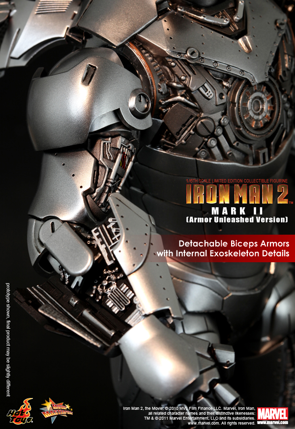 * Authentic and detailed fully realized likeness of Mark II with part of the armors unleashed in the movie Iron Man 2