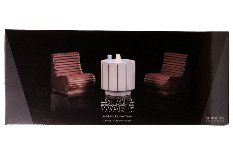 The packaging for the Mos Eisley Cantina matches the visual style of the previous Star Wars Sideshow releases. You get full color photography on all sides showcasing the furniture as well as the usual frame grabs from the film. The chairs and table are secured within large pieces of Styrofoam which does a good job protecting the environment.