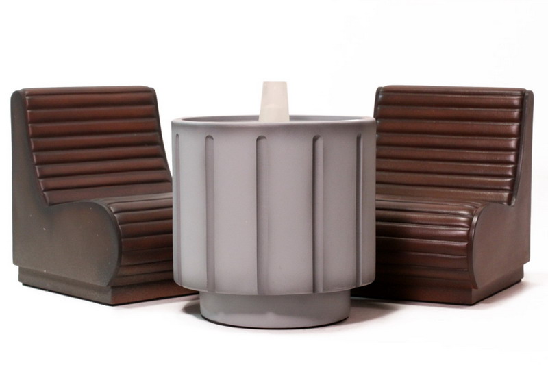 The two chairs are identical and can seat one 12” figure each. The table has a nice LED light-up feature that really adds to the atmosphere (three batteries are included). Also included are three beverage accessories, one blue, one green, and one pink.