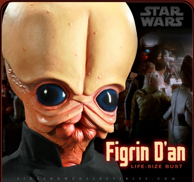[HR][/HR]One of the most rememberable pieces of Star Wars music (aside from the opening theme) is "Cantina Band," the catchy tune played by Figrin D'an and the Modal Nodes in the Mos Eisley Cantina (actually it was John Williams). Now thanks to Sideshow, fans can soon reenact the scene (while humming the diddy) with 12-inch action figures of Figrin D'an and the Modal Nodes as well as a life-size bust of Mr. Figrin D'an himself. Both items are scheduled to go up for pre-order May 12th.