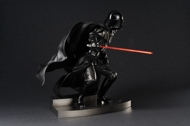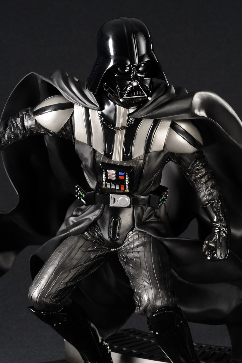 Kotobukiya’s line of Star Wars ARTFX Statues continues with the Dark Lord of the Sith, Darth Vader. Based on his look in Return of the Jedi, Vader springs to life with multiple light-up parts via LEDs in his helmet, chest, waist, and lightsaber. Darth Vader stands 11 inches tall (1/7th scale) atop an exclusive Death Star panel display base.