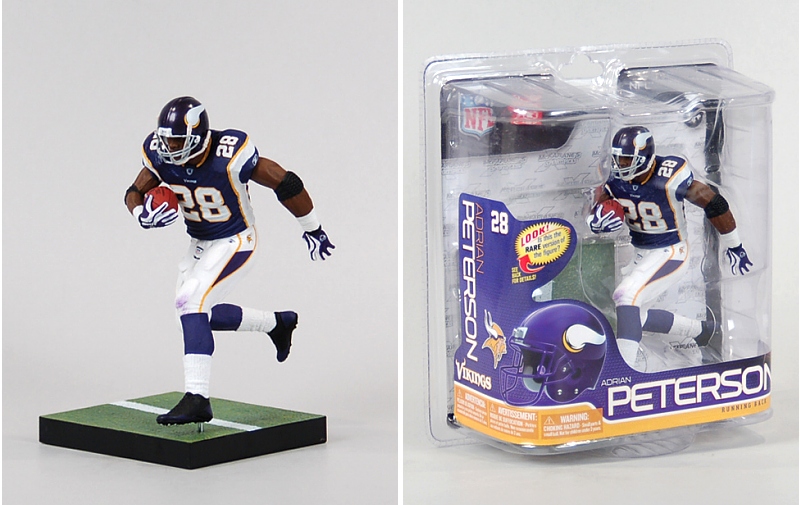 NFL 26 features the SportsPicks debut of Hall of Fame Steelers quarterback Terry Bradshaw. Bradshaw is joined by fellow Hall-of-Famer Jerome Bettis – available as a St. Louis Ram. New England's Wes Welker and Miami's Brandon Marshall make their SportsPicks debuts as well, alongside a new pose for Giants quarterback Eli Manning. Baltimore's Ray Lewis celebrates yet another defensive highlight, while McFarlane's 12-inch Adrian Peterson pose is available at the six-inch scale for the first time.