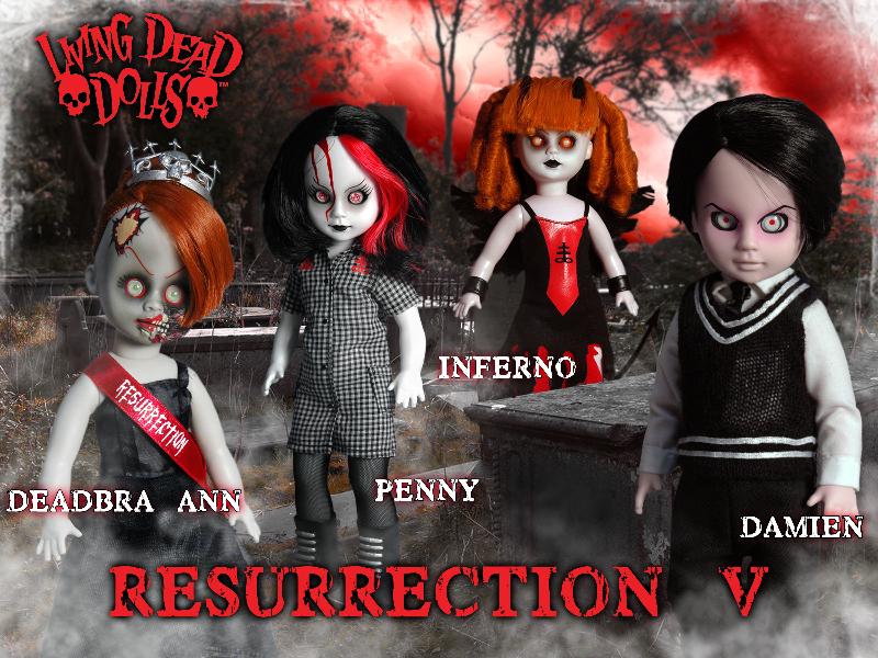 [HR][/HR]Mezco announces that they will be premeiring their latest Living Dead Dolls assortment - Resurrection V - at San Diego Comic-Con 2011, July 21-24. The set includes Penny, Deadbra Ann, Damien and Inferno - all reimagined with new outfits and glass look eyes. Each member of this limited edition comes with its own death certificate, and entombed in its own coffin. Pre-Orders are now being accepted at mezcotoyz.com, the set of four LDDs priced at $225.