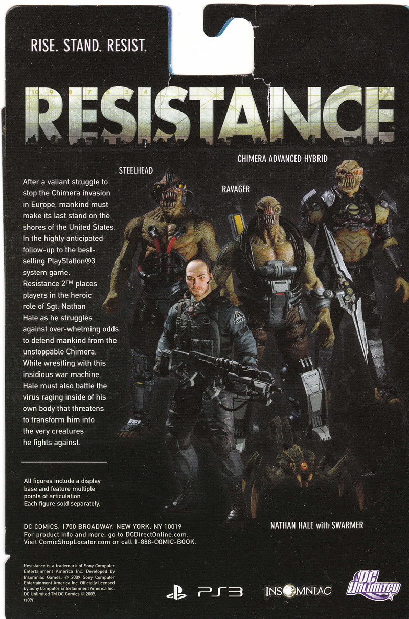 [HR][/HR]I'm an Xbox owner and thus haven't had the opportunity to play Resistance, an exclusive PS3 title. That didn't stop me from purchasing these cool looking figures! Based on characters from the second game, these 5-inch scale figures from DC Unlimited amaze with awesome sculpts and ample amounts of articulation. Their size initially concerned me, but in-hand these really feel right. Articulation is also very good on these figures, something that was sadly sacrificed on later video game lines, such as Killzone (no leg joints) and recently released Mass Effect (lack of a swivel bicep for 2-handed weapon grasping).