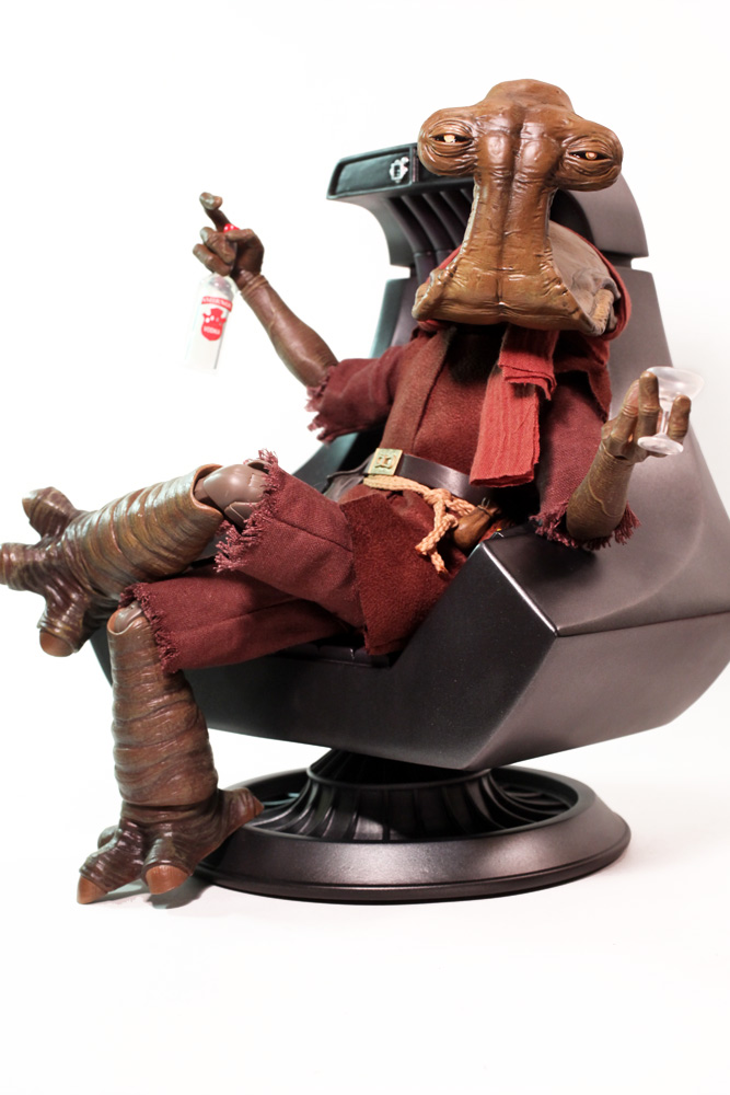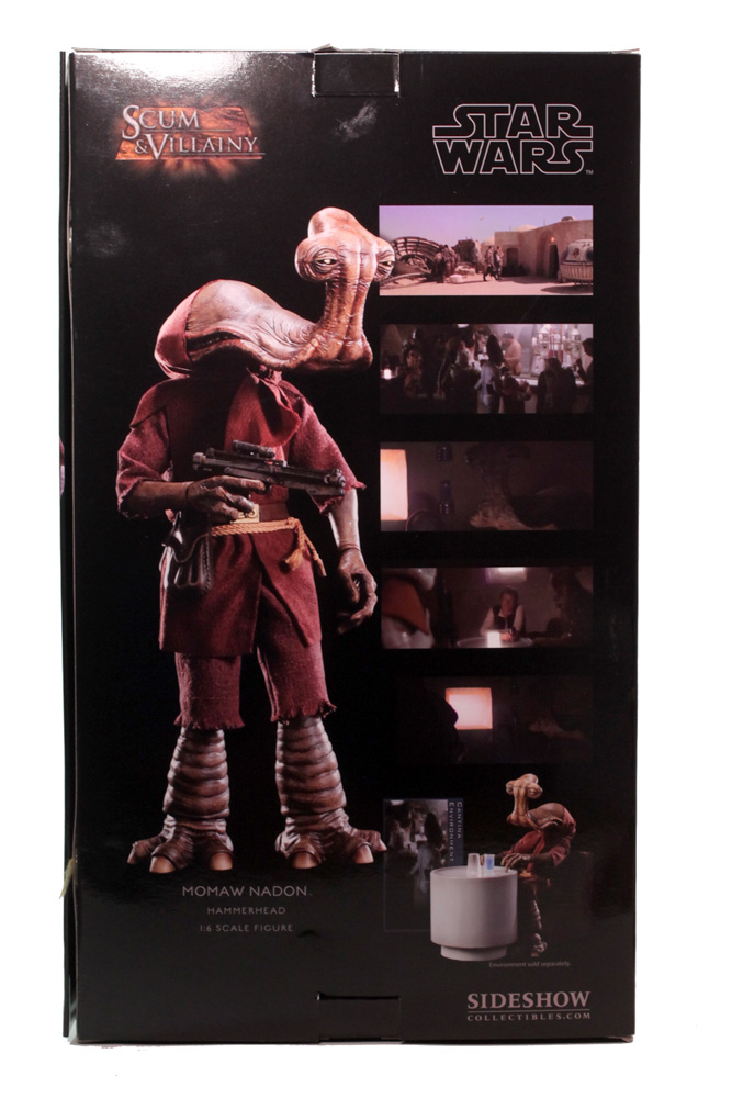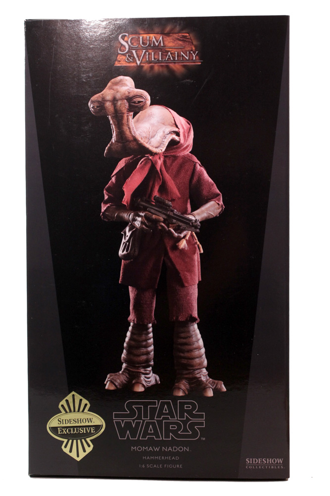 [HR][/HR]In the world of 1:6th scale collecting, we tend to go with the coolest characters, the meanest villains, or perhaps the most super of super heroes. But there comes a time in one’s life when you need to stop and add a drunk alien to your collection. Sideshow Collectible’s 12" Momaw Nadon, or "Hammerhead" for the vintage fans, isn’t necessarily a cool character, a mean villain, or even a super hero. He is, however, the one Mos Eisley Cantina alien that makes me feel the most nostalgic for a simpler time when Star Wars: Episode IV: A New Hope was simply known as "Star Wars".