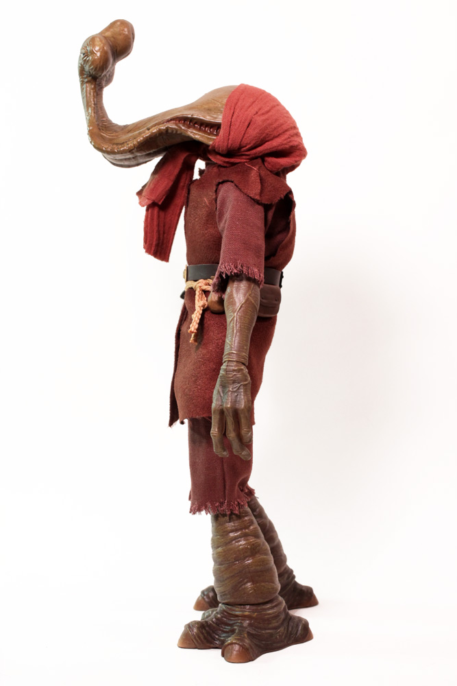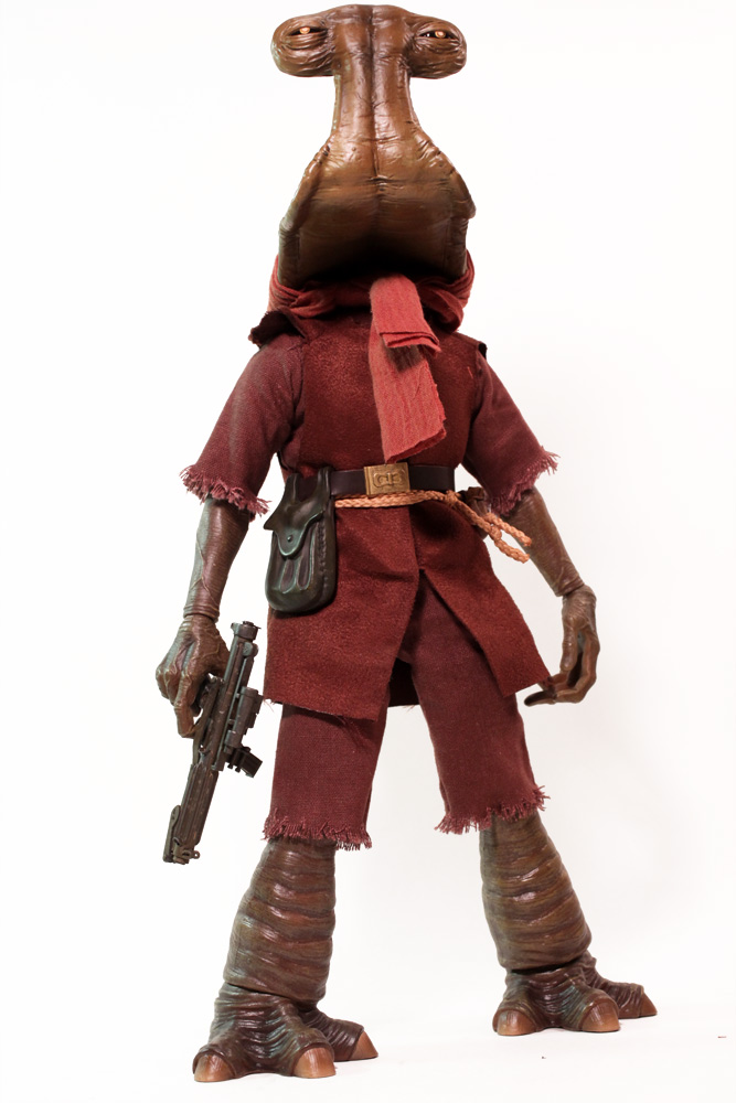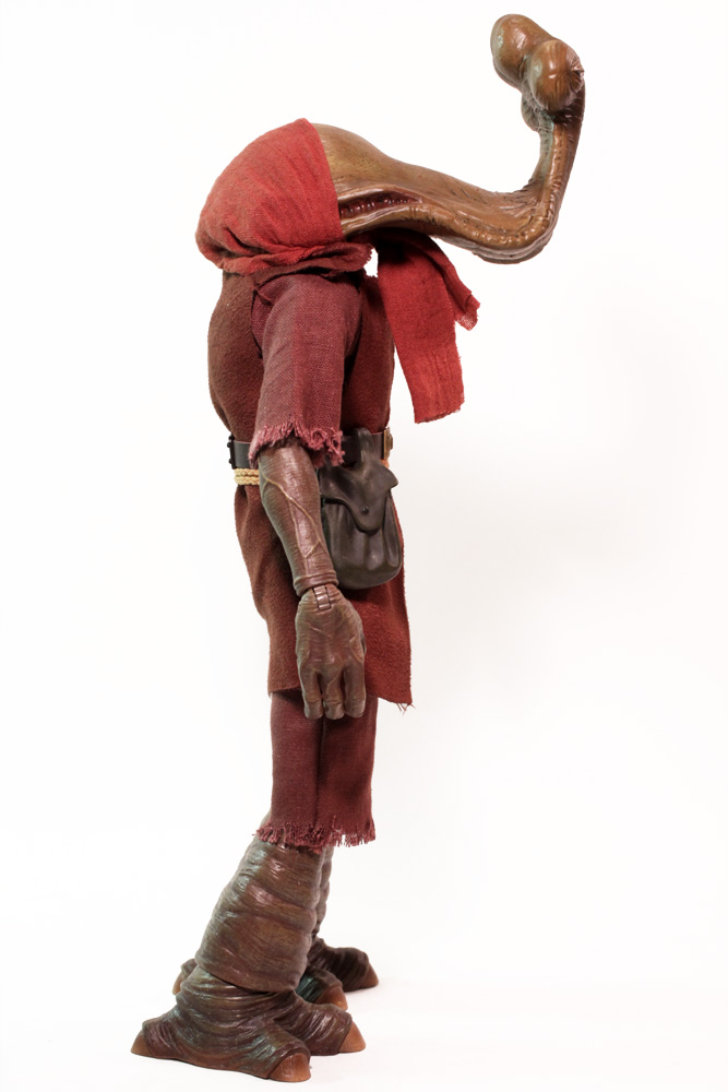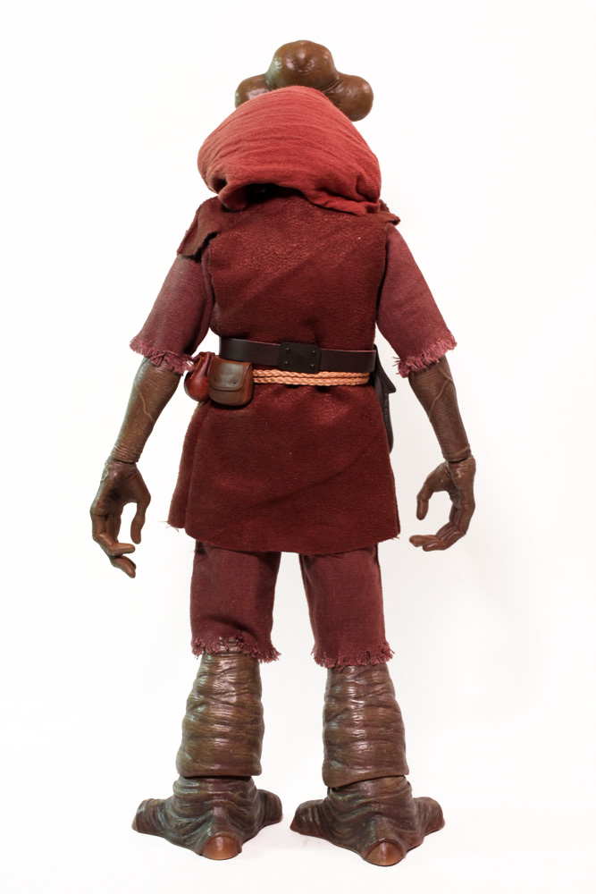 The sculpt by the artists at Sideshow is captured perfectly in this figure. The Ithorian alien details extend to the head, forearms, hands, calves and feet. The rest of the body remains a dark colored pro-body. As long as you keep his sleeves and pants where they are, the plain elbows and knees are less noticeable.