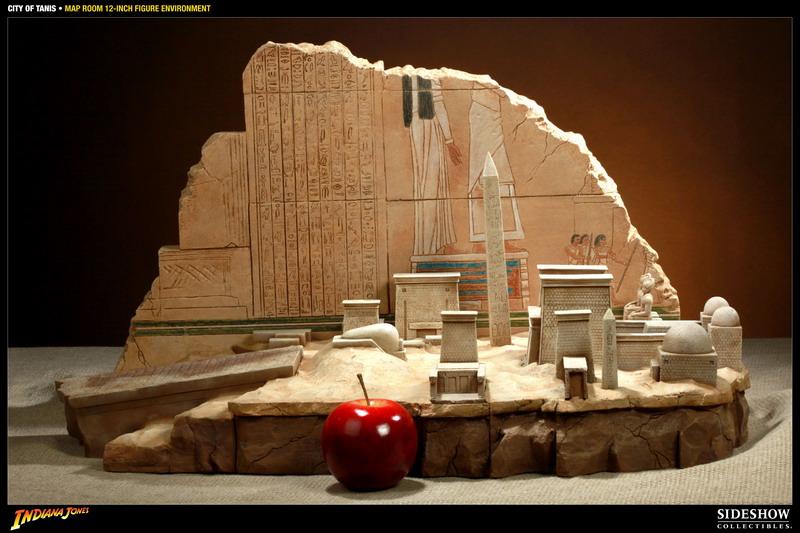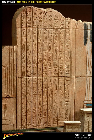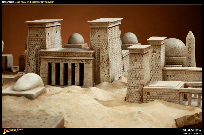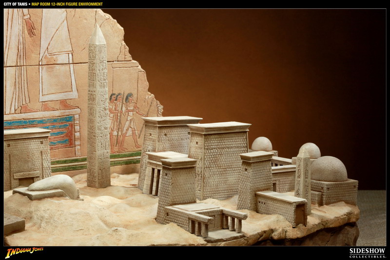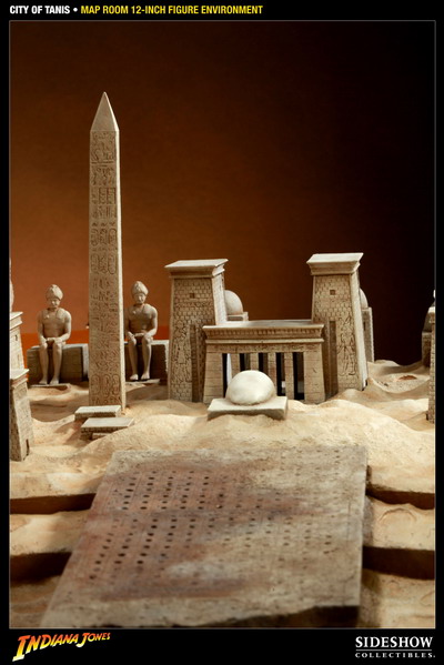 Seen in "Raiders of the Lost Ark," the City of Tanis - Map Room measures 17.00" H x 17.00" W x 27.00" L, large enough to accommodate your Indy figure with Staff of Ra.