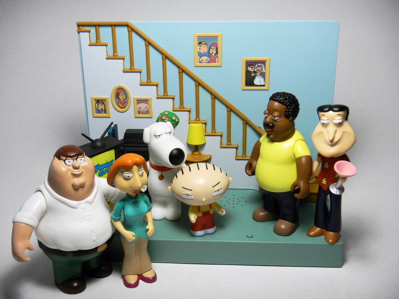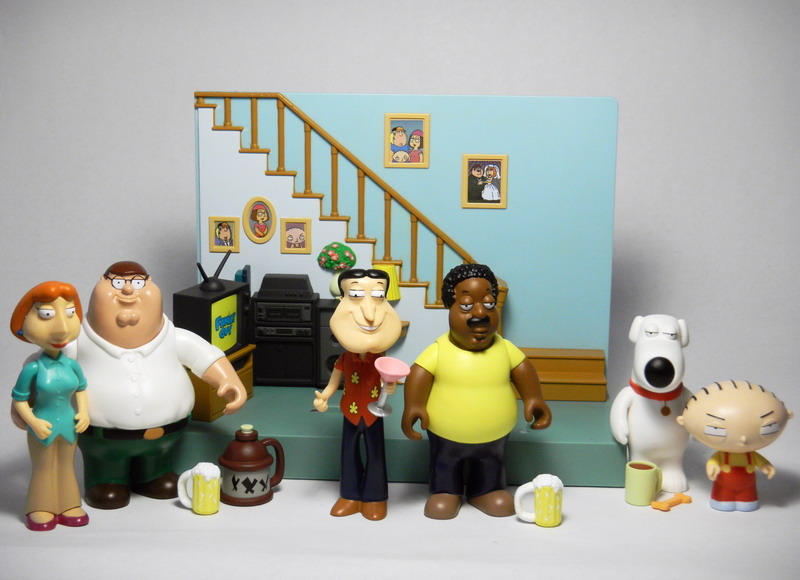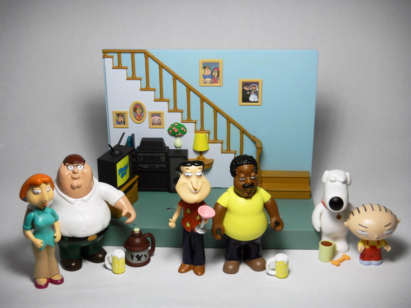 The new figures will feature ball-socket shoulders, heads, swivel waists and swivel wrists. Each character accessory can be easily placed in the figure's hands with the exception of Stewie due to his smaller size. Each blister-carded action figure is finely sculpted with character–accurate outfits and feature great paint applications.