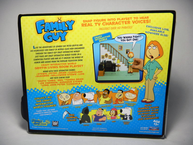 The back of the package features a sneak peek at some upcoming figures consisting of Death, Chris, Meg and Tuxedo Brian.