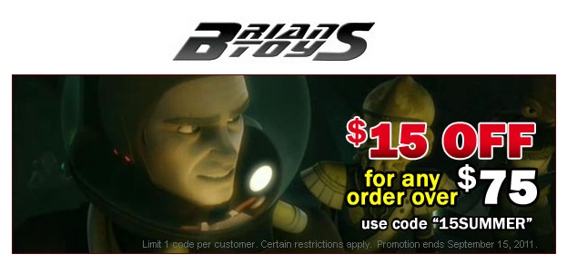 BriansToys.com is offering customers a $15 OFF coupon for all orders over $75. This is good for all in-stock orders placed by September 15th, 2011.