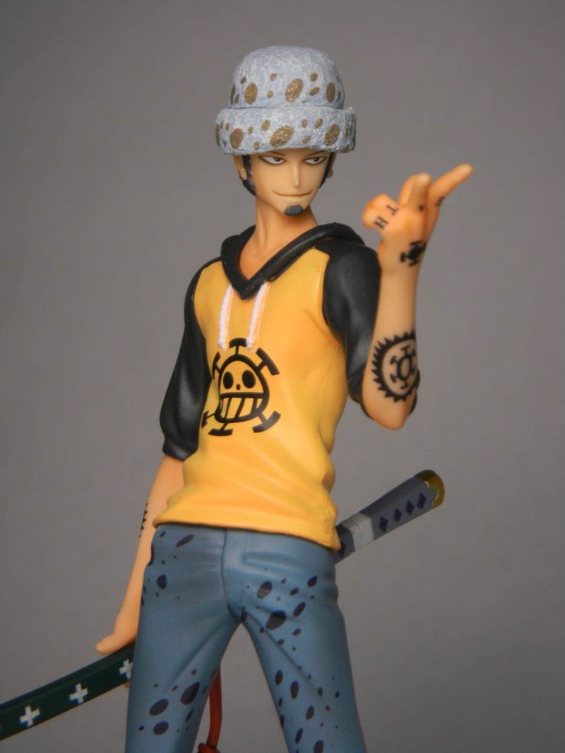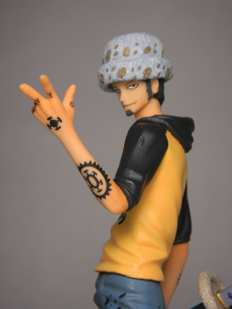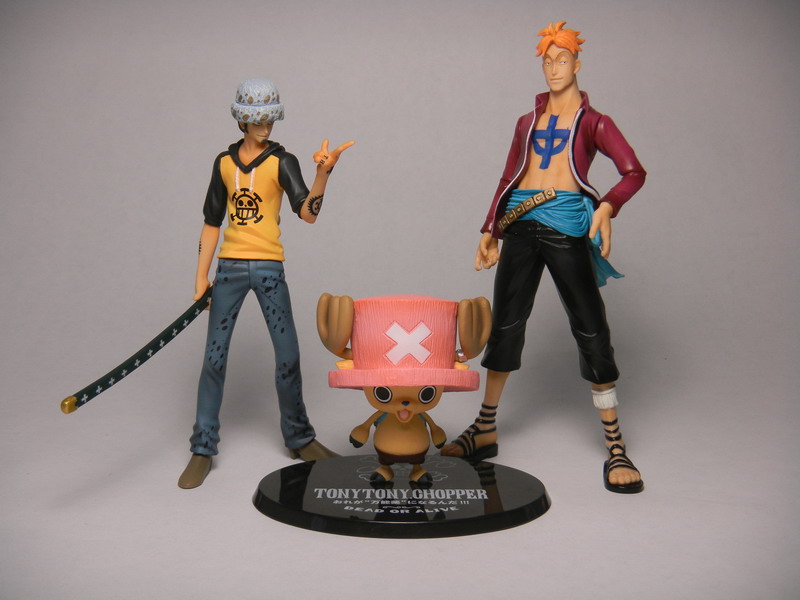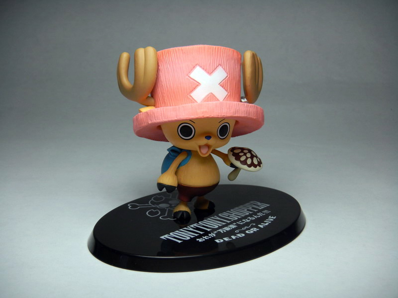 Trifulgar Law is a very "average Joe" type of character with some very unique powers. This cunning and slender pirate is posed in a very laid-back way holding his sword sheath and at the ready to attack. The posing of his right hand suggest that he is about to commence his "Room Shambles" attack. Finally, we have Tony Tony Chopper the cute dwarved reindeer and member of the Straw Hat pirates. Tony includes an interchangeable right hand with medical mushroom allowing some minor variation in diplay options.