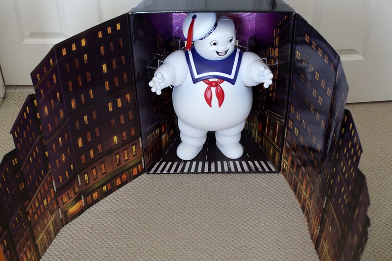 The massive package that Stay Puft comes in resembles a large carrying case, complete with handle for easy transport. On the box is Matty’s big face and the words:
