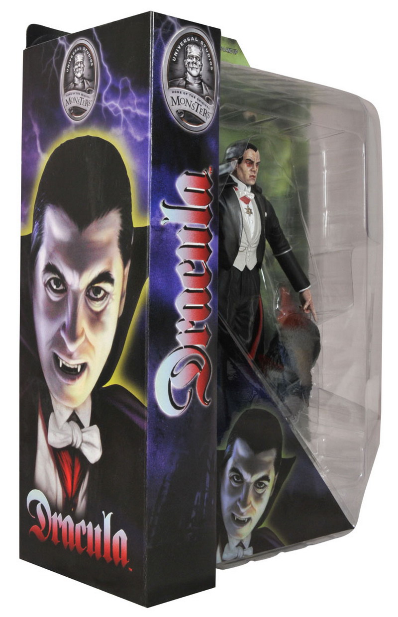 Frankenstein has a different paint scheme and comes with his lab table as an accessory, while Dracula has a new head sculpt and comes with a wolf and a new base. Both figures come in the larger "Select" packaging to accommodate their new pack-ins and will hit around the same time as their non-Select friends this October.