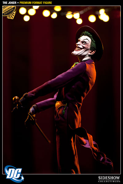 Two versions will be sold. The Sideshow Exclusive Joker Premium Format Figure will include a switch-out portrait with hat and will be priced at $349.99. Additionally, the regular version, without the additional switch-out accessory will be available for pre-order priced at $349.99. Both versions of The Joker Premium Format Figure will be sold on a first come, first served basis, and will have the FLEXPay option available as a payment choice.