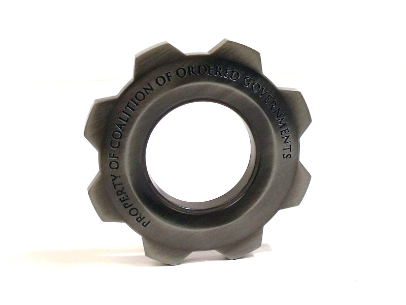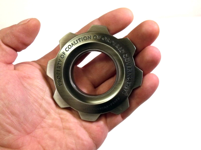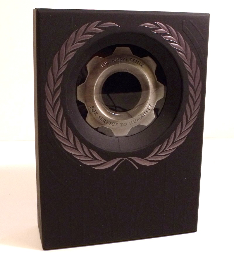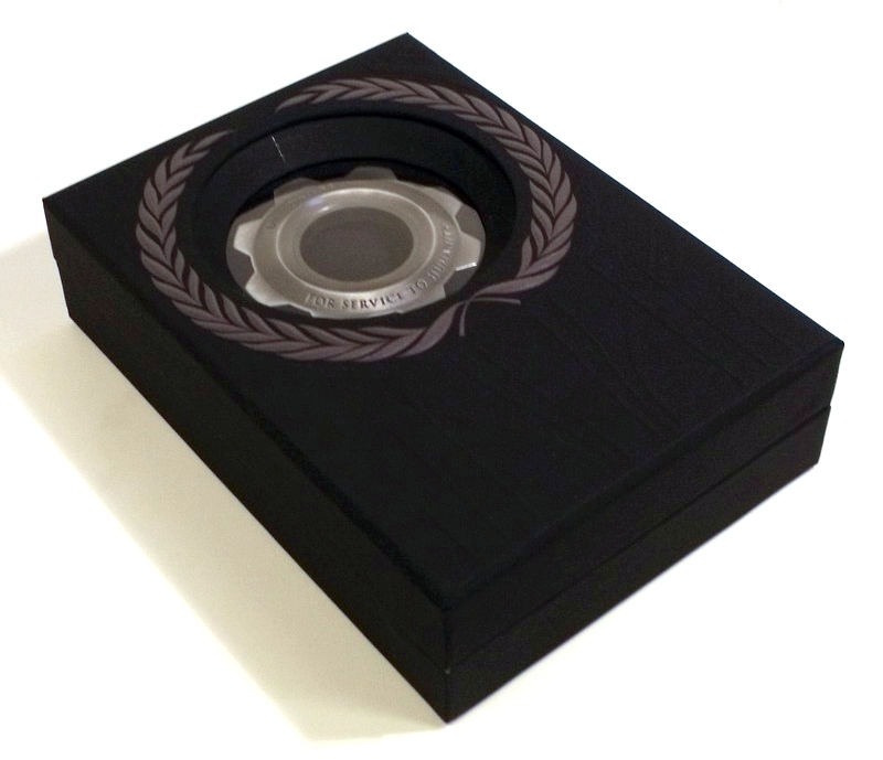 The Octus Award Service Medal is a solid metal replica that has some nice heft to it. It measures 3 inches in diameter and is wide enough to stand on its own. The medal and box alone are well worth the extra $20.