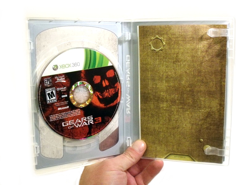 This is actually the first thing you see when you lift open the Octus Award Service Medal box. Resting on the bottom is a copy of Gears of War 3 in a plastic game sleeve that resembles some futuristic tape. The flap to remove the medal is located directly above the game.