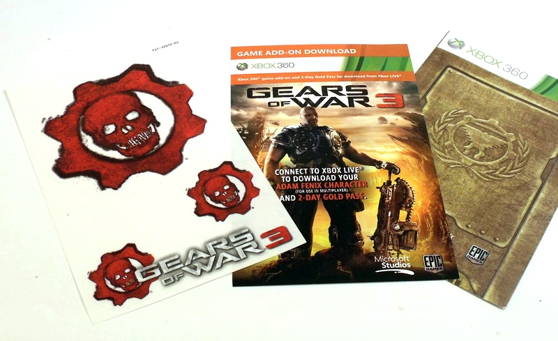 Finally, there's the game! They even packed in some stickers. Also included is the game's instructions and bonus code for an unlockable Adam Fenix Multiplayer Character.