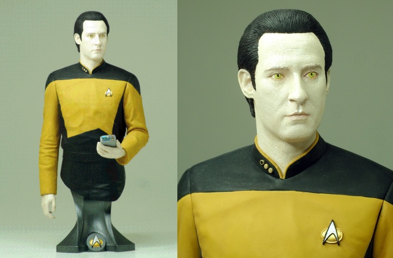 Joining the Star Trek Masterpiece Collection in March 2012, the Lieutenant Commander Data Maxi-Bust celebrates fan favourite Brent Spiner's unforgettable performance as Star Trek: The Next Generation's sentient android chief operations officer. The detailed polystone bust stands 8" tall and 5" wide and is priced at a SRP of $79.99.