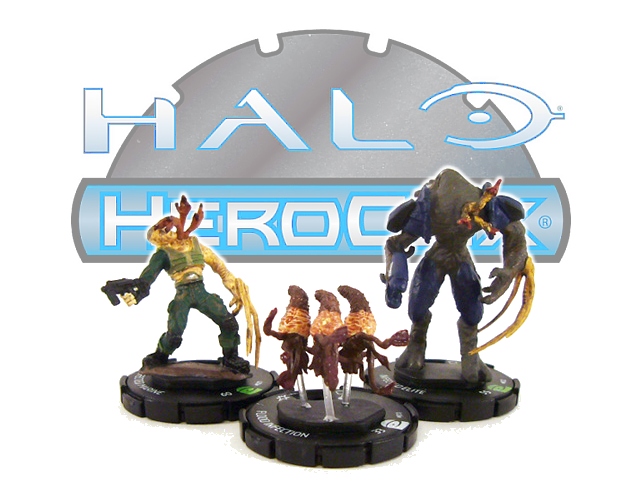 In the old days of WizKids games there was a Halo miniatures game that used the HeroClix “clicking” base design but was otherwise incompatible. It was popular as a standalone game mostly because of the great sculpts of its figures, but like all good things faded away. This week, however, WizKids is bringing back Halo in a huge way! Recent releases of Gears of War (see our stories HERE, HERE, and HERE) and Street Fighter HeroClix (see HERE) have paved the way for an all-new Halo HeroClix set of figures that are now fully compatible with the mainstream game and all of its expansions. In this set you’ll find plenty of Master Chiefs, other UNSC troops, lots of Covenant aliens, the dreaded Flood, and much more!