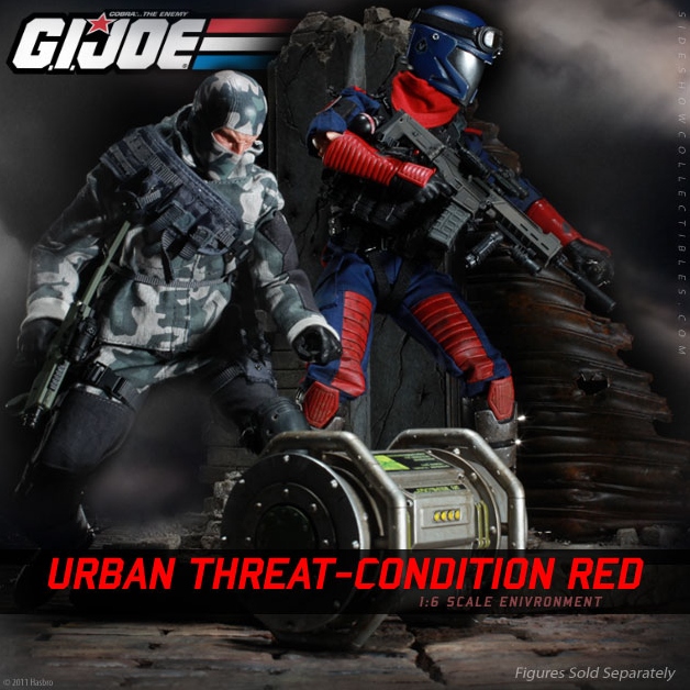 Sideshow provides a sneak peek at their next GI Joe 12-inch Figure Environment. Called Urban Threat – Condition RED, the environment looks to involve some sort of explosive device, perhaps a dirty bomb. Expect a full reveal early next week with pre-orders to begin October 6th.