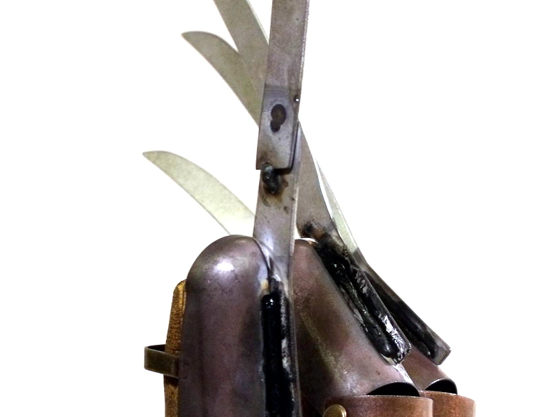Construction-wise, the Freddy Krueger prop replica glove is the real deal, made of the exact same materials as the movie weapon. You have sturdy steel for the blades, thick copper for the finger armatures, and a solid brass back plate. The metal rivets are all firmly affixed and the glove itself is, from all appearances and texture, real leather or a material very close to it. Again, like NECA's 2010 remake glove, I have no fear of the glove falling apart - be it the rivets coming loose or the leather glove tearing. Although as you can see in the photos, the glove is already pretty well shredded - just like in the movie - so I wouldn't recommend adding any additional stress to it.