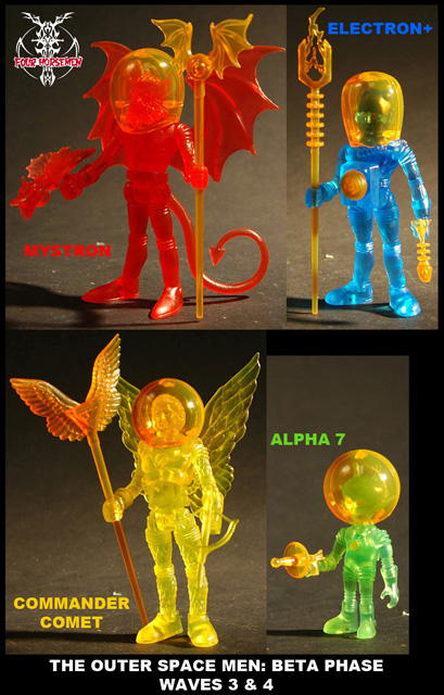 [HR][/HR]Originally sold at NYCC 2011, the Four Horsemen's exclusive Beta Phase Outer Space Men waves 3 & 4 consist of Mystron, Commander Comet, Electron+, and Alpha 7 in special color variants. Right now you can pick up all four of these rare figures with their unique accessories and helmets for $50 (plus shipping and handling) at www.StoreHorsemen.com. Limited quantities mean they won't be available for long.